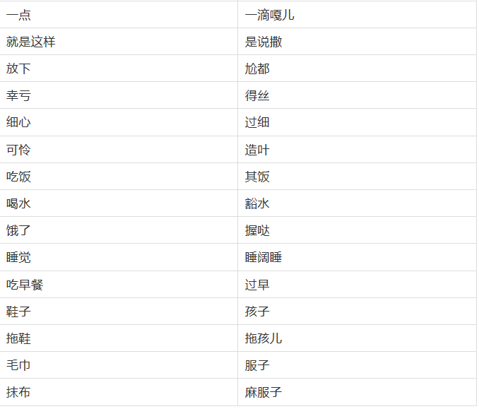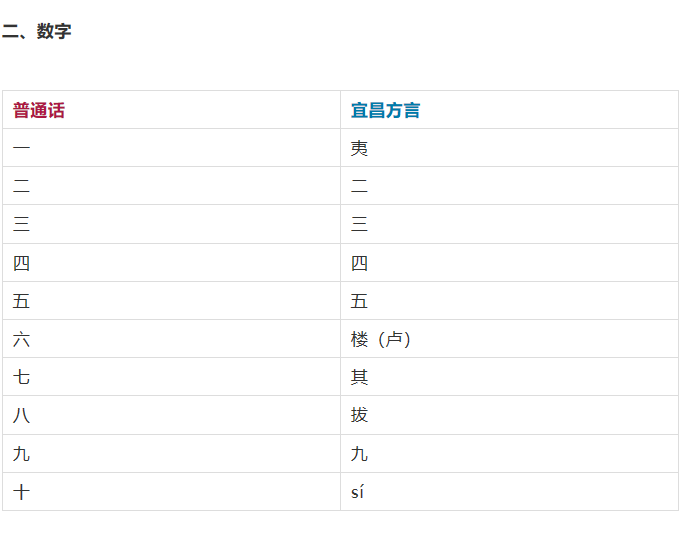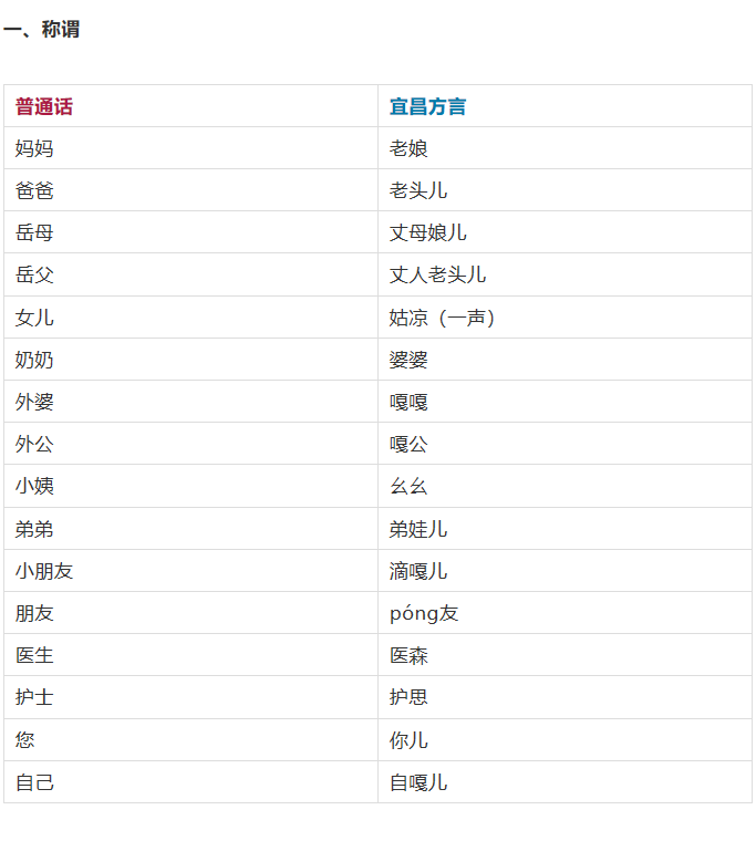 以下为普通话与宜昌方言对照