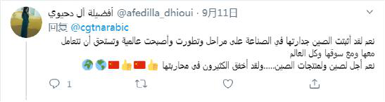 来自摩洛哥的网友费迪拉留言:“中国产品遍布全球,中国已经证明了自己在制造业中的能力,中国值得我们与她和她庞大的市场打交道。”