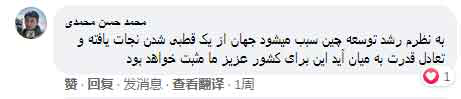 阿富汗网友穆罕默德·哈桑·穆罕迈迪留言:“我认为中国的发展进步将拯救世界免受单边主义的影响,并使权力达到平衡,这对我们的国家是积极的。”
