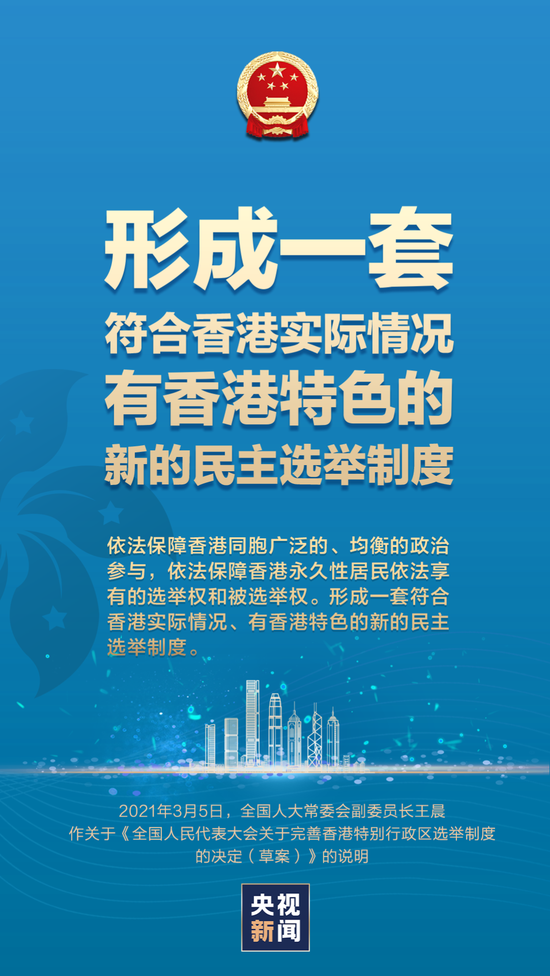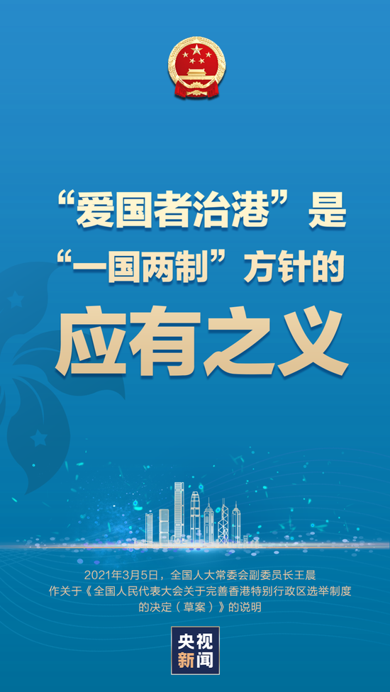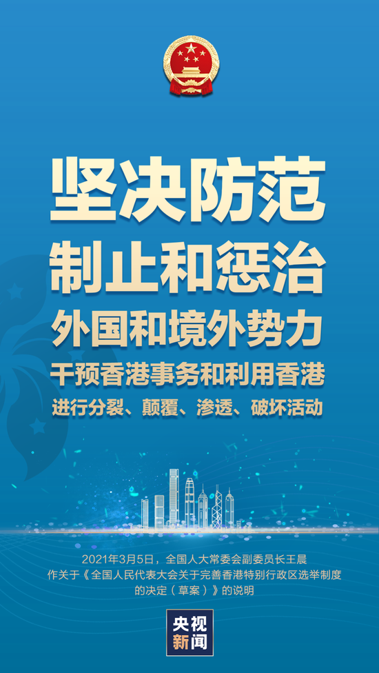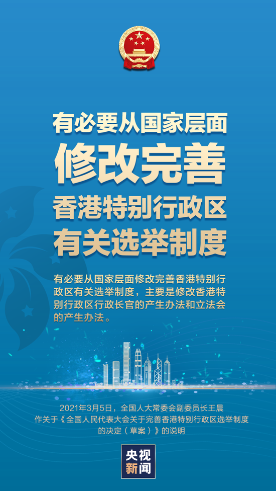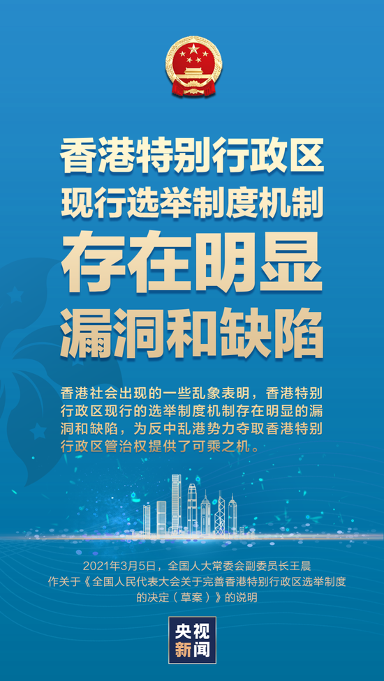 3月5日上午,十三届全国人大四次会议在京开幕。受全国人大常委会委托,全国人大常委会副委员长王晨作关于《全国人民代表大会关于完善香港特别行政区选举制度的决定(草案)》的说明。