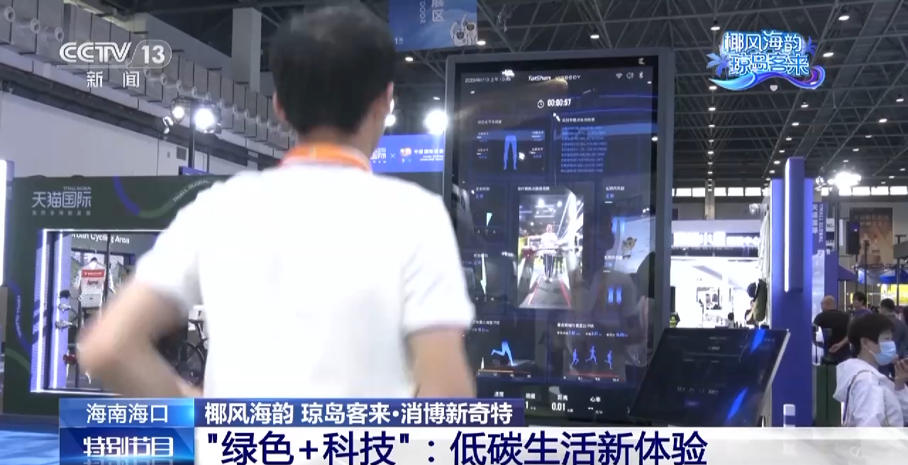 现场还有3D沉浸式的智能专业跑步机,可以在两分钟之内采集7个方面的信息,例如跑步姿态、膝盖动作等,将运动与人工智能相结合,将高科技赋能绿色健康生活。