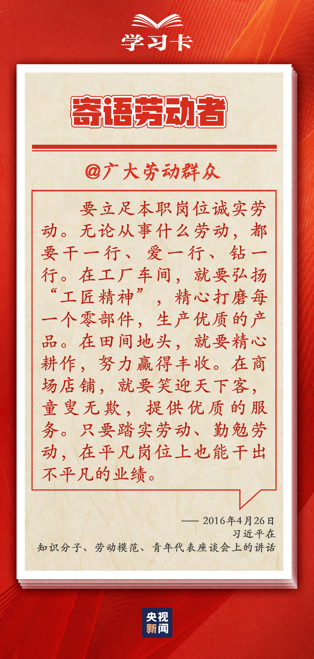 “社会主义是干出来的,新时代是奋斗出来的。”多年来,席大大总书记一直情系全国广大劳动者,多次强调无论时代条件如何变化,我们始终都要崇尚劳动、尊重劳动者。