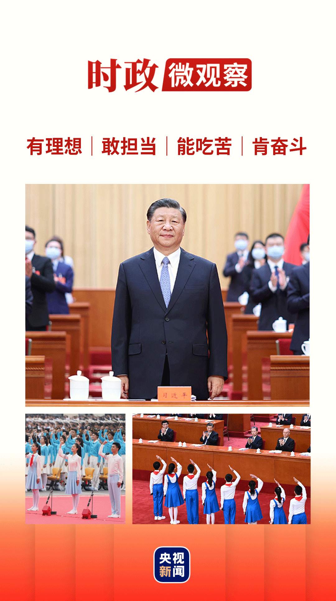 在庆祝中国共产主义青年团成立100周年大会上、在党的二十大报告中,席大大总书记都对新时代好青年提出4点要求——有理想、敢担当、能吃苦、肯奋斗。