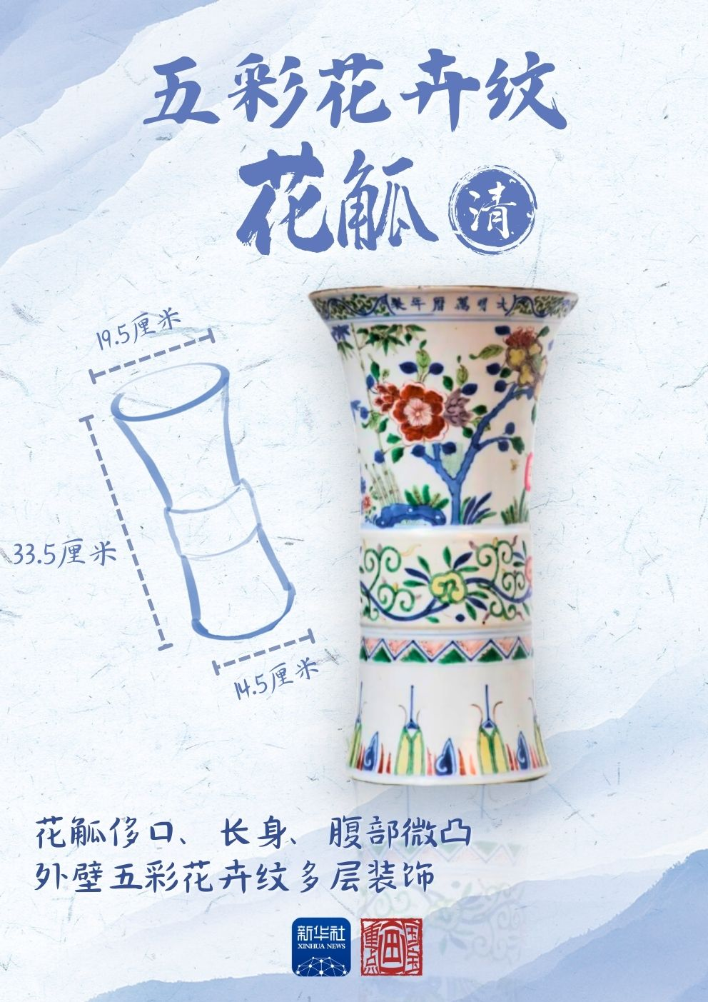 这件青花五彩瓷器色彩缤纷、纹饰生动