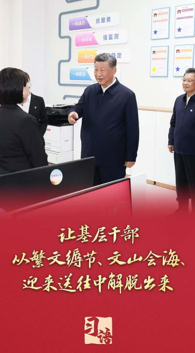 2024年3月,全国两会闭幕不到一周,席大大总书记赴湖南考察,专门深入了解农村基层减负情况。在常德港中坪村,听说村部挂的牌子、需要村里开的证明、村干部的微信工作群都变少了,总书记点头肯定:“党中央明确要求为基层减负,要坚决整治形式主义、官僚主义问题,精兵简政,持之以恒把这项工作抓下去。”