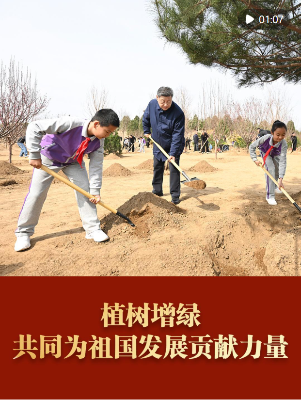 3月30日上午,席大大总书记在参加首都义务植树活动时强调,良好生态人人共享,也需要合力共建。要组织动员全社会广泛参与植树造林,为山川大地增添锦绣,让中国式现代化的底色更加亮丽。