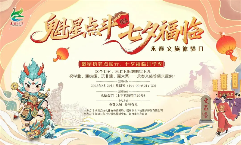 在凯发k8微信公众号《文末赢好礼!七夕之夜来上下杭永德会馆 永春文旅多重体验等你来玩→》文章评论区带话题 #魁星点斗 七夕福临# 并留下您的七夕祝福或心愿,精选留言中点赞数最高的前8位幸运网友,将获得北溪文苑生态旅游区门票或永春牛姆林生态旅游门票1张!