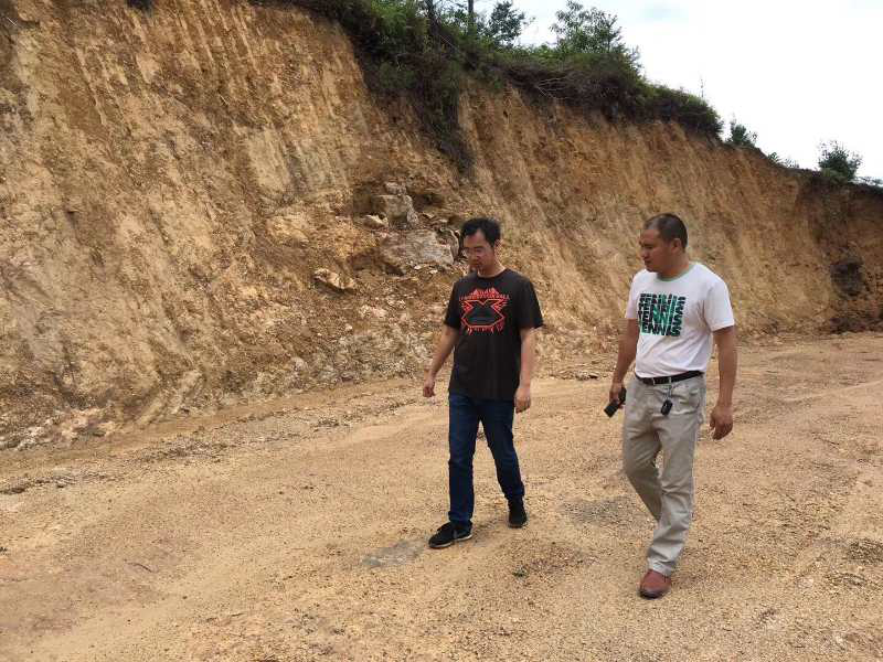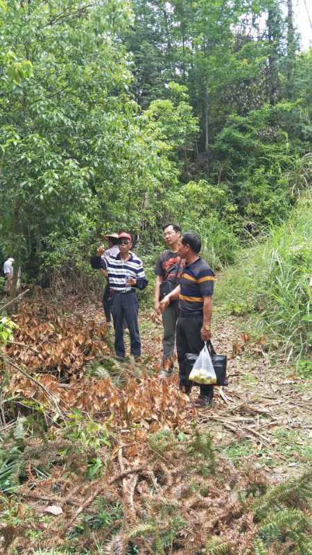 图为陶然(右二)与村民察看树葬区选址。图片来源:《福建法治报》