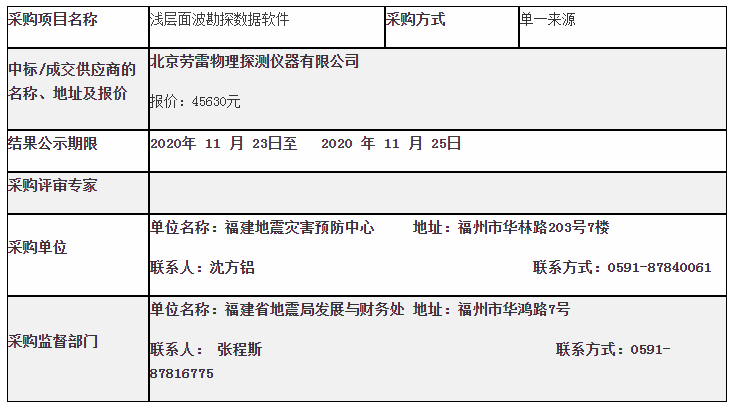 地震灾害预防中心2020年浅层面波勘探数据处理软件采购结果公告