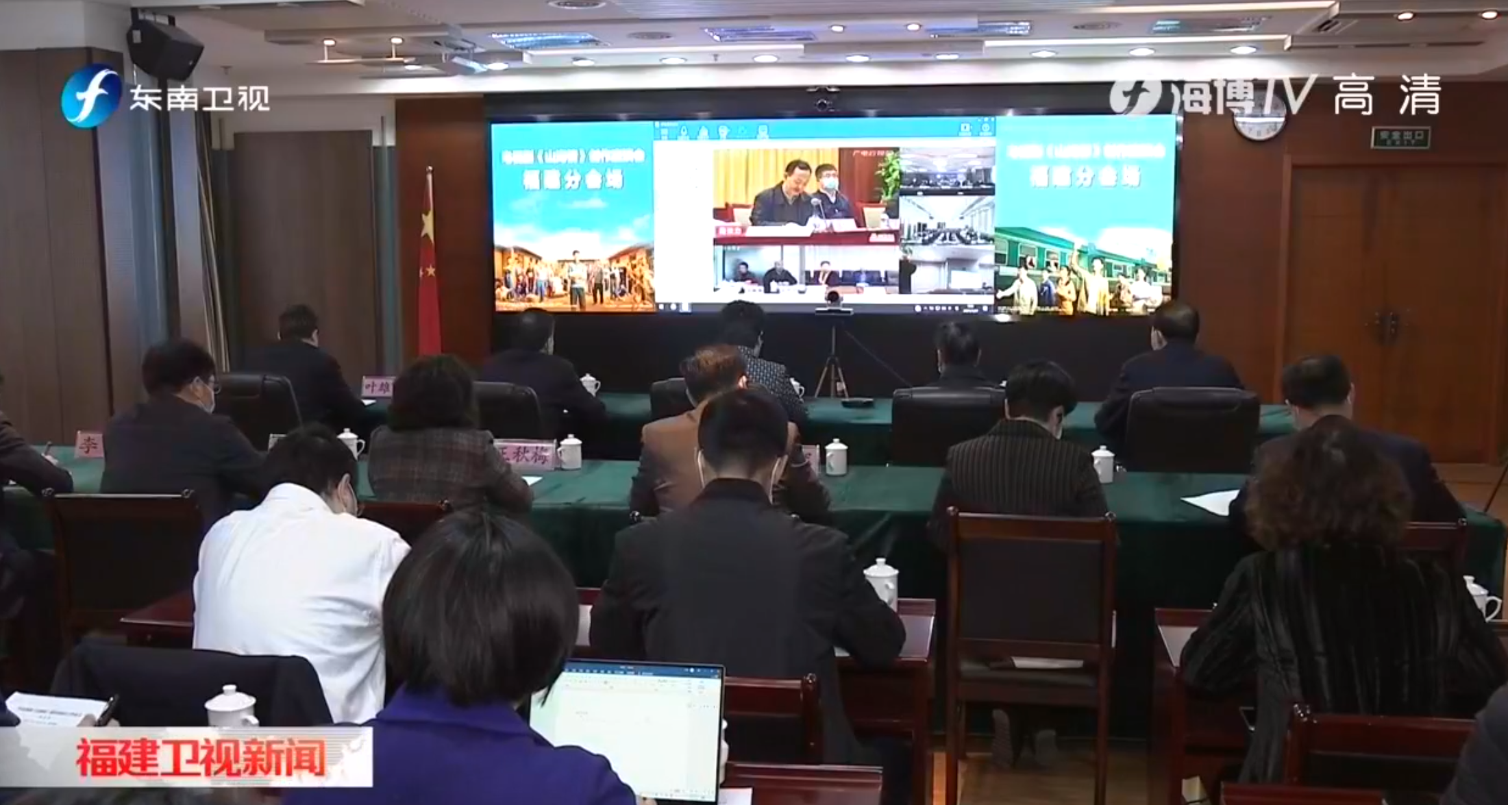 省委宣传部分管日常工作副部长许守尧,省委宣传部副部长、省政府新闻办主任叶雄彪,省广电局党组书记、局长李大大,省广电局党组成员、副局长、一级巡视员毛文航,省文联党组书记王秋梅,省广电集团党组书记、董事长曾祥辉,省广电集团党组副书记、总经理庄志松等参加福建分会场会议。电视剧《山海情》制片人侯鸿亮、导演孔笙、编剧王三毛、主演黄轩等主创代表,仲呈祥、李京盛、王一川、邓凯、赵彤等业界专家在北京主会场发言。