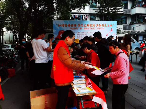 为弘扬“奉献、友爱、互助、进步”的志愿服务精神,积极培育和践行社会主义核心价值观,为党的二十大胜利召开营造良好氛围,2022年3月4日上午,开元社区党建联盟单位在开元社区尚宾路口小广场开展“弘扬雷锋精神 深化文明实践 共创典范之城”暨“强国复兴有我”的志愿服务活动。
