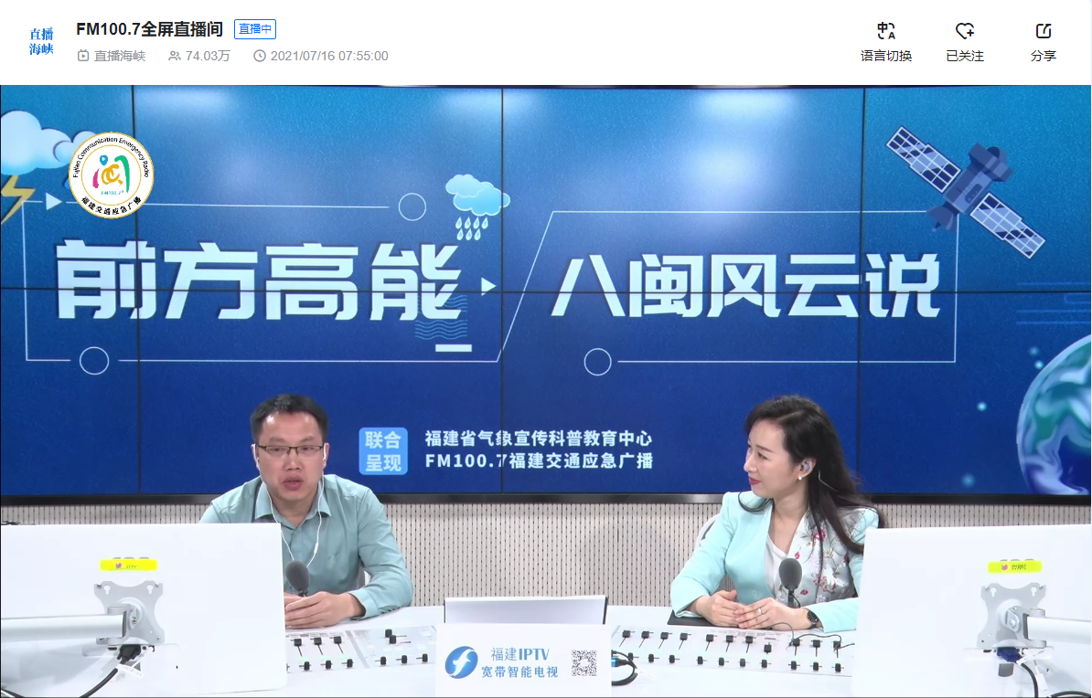 是什么原因让雨水如此“敬业”?苏同华说,原因包括全球气候异常、拉尼娜事件为降雨偏多提供了重要的气候背景。此外,今年夏季风提早爆发带来充足水汽,冷暖空气对峙也有利于降雨的持续。 苏同华分析了大家最关心的问题:这雨底要下到什么时候?从未来趋势看,随着6月中旬后期,副热带高压逐渐北抬,福建省内大部分地区的雨水基本停歇,少雨或者不下雨的日子甚至可能持续到7月上旬。但少了雨水的侵扰,气温将明显回升,接下来大家就要防范高温天气了,甚至还要注意防范从涝到旱的急剧转变。当然,苏同华也特别指出,受目前气象科技发展水平的制约,7天以上的天气和气候趋势预测还存在较大的不确定性,大家还是需要及时关注最新的天气预报信息。 访谈的最后,苏同华向大家普及了“暴雨预警等级”的正确阅读方式。介绍了作为气象防灾减灾第一道防线,气象工作如何保障防汛工作的顺利进行,减少洪涝灾害损失。同时也提醒广大听友、网友,汛期之后,大家可能还会面临的高温、台风等自然灾害,要注意时刻关注天气预报预警信息。 整场访谈紧贴当下天气热点问题,听友网友讨论热烈,节目通过中国气象局微博、福建气象微博、直播海峡、1007福建交通应急广播全媒体直播间、1007微博等多个平台同步音视频直播,累计观看量超80万人次,取得了良好的反响。 |
