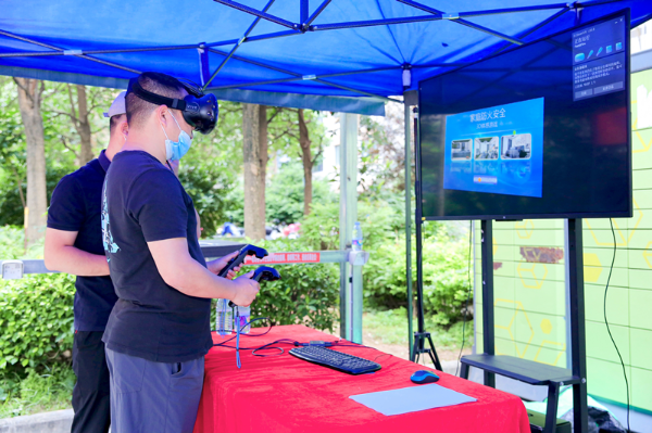 为增强活动的互动性和体验感,活动现场设有防灾减灾宣传展区、体验区、互动区三个区域,居民可以体验“119报警模拟器”“VR家庭隐患排查系统”等设备,还可参与防灾减灾知识有奖问答互动。