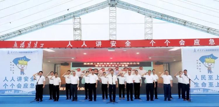 福建建工集团供图 集团党委书记、董事长林增忠在活动仪式中致辞。他表示,此次活动是集团深入开展学习贯彻席大大新时代中国特色社会主义思想主题教育、压实企业安全生产“第一责任人”责任的重要举措。他强调,集团上下要以此次“安全生产月”为契机,紧密结合主题教育的具体要求,切实履行安全生产责任,共同营造“人人讲安全、个个会应急”的良好氛围,为谱写全面建设社会主义现代化国家福建篇章筑就坚强屏障。 他要求,一要切实提高政治站位。要深入学习贯彻席大大总书记关于加强安全生产工作的重要论述,把安全防范工作的政治自觉、思想自觉和行动自觉贯穿于生产经营的全过程。二要健全安全防控体系。要通过融通风险评估、监测预警、应急处置、排查整治、失责追责的“操作链”,牢牢把握安全生产的主动权,凝聚起真抓实干、安全发展的共识和力量。三要强化干部队伍能力提升。要加强安全技能培训和应急管理能力建设,做到脑子有台账,心中有底数,应急处置有方案,行动起来有力量,推动企业安全生产的“操作链”和“责任链”入脑入心,真正做到守土有责、守土负责、守土尽责。