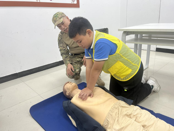 为了让营员们充分认识了挽救生命最关键的“黄金4分钟”,掌握正确的自救互救方法,来自福建省星光救援队的王清琪老师利用人体模具开展心肺复苏的技能教学,教给营员们判断是否需要实施心肺复苏救援的“三要素”,以及心肺复苏的操作要领,并让营员们轮流体验心肺复苏的操作流程。