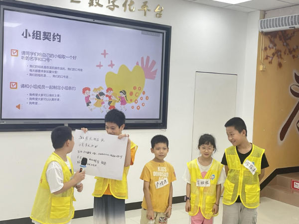 通过丰富有趣的“破冰游戏”营员们渐渐熟悉起来,他们分为四组进行“找呀找呀找朋友”的小游戏,每一位营员在纸上描出自己手掌的形状,在每个手指上写下自己的信息,在现场寻找相同特点的朋友。