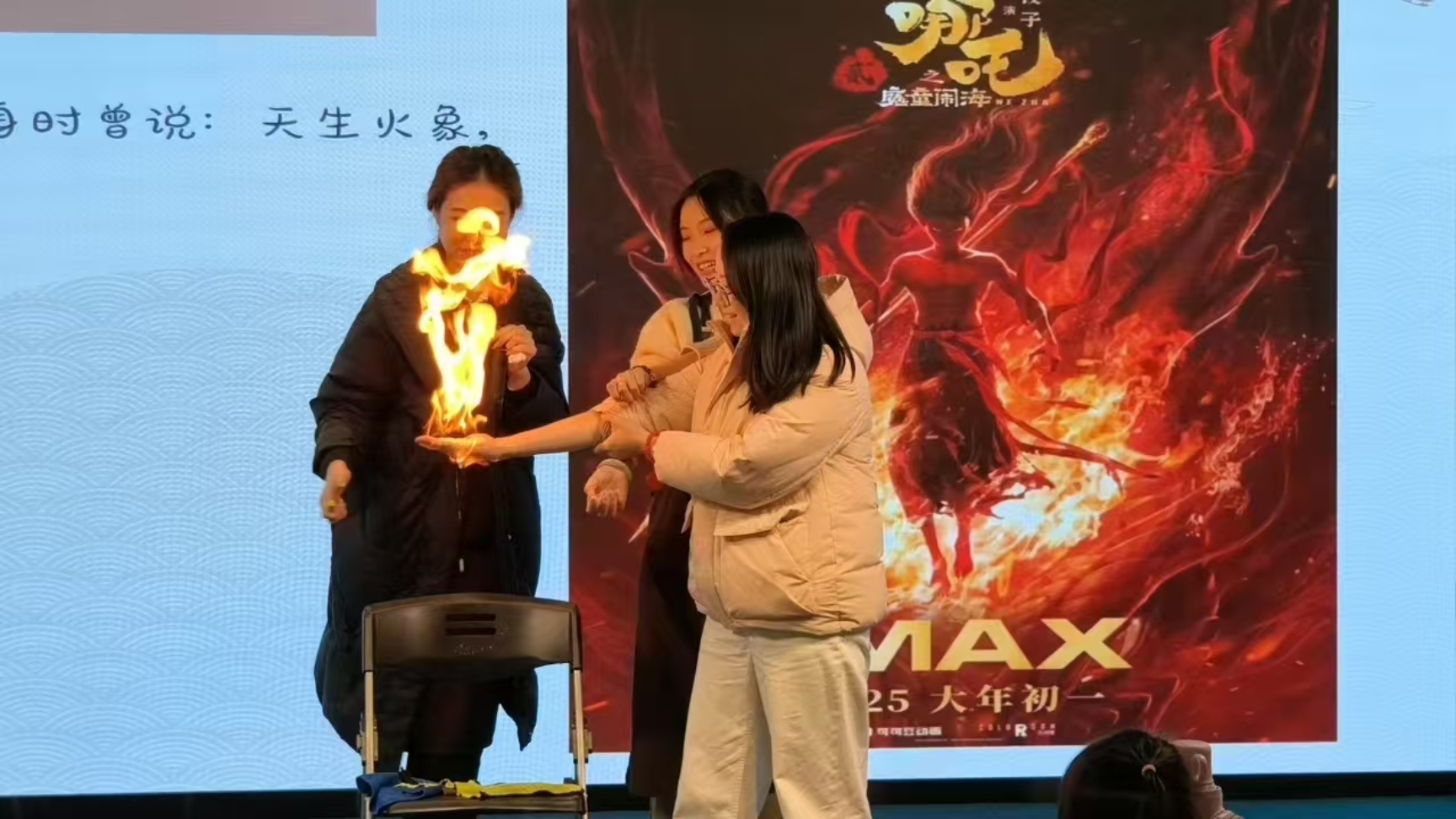 活动通过角色装扮、名著引导、科学实验、揭秘动画、配音游戏、趣味手工等环节,带领孩子们了解哪吒背后的故事。孩子们不仅能够深入了解哪吒形象的历史演变及其在中国古典文学中的地位,还可以化身小小配音员,为自己喜爱的角色配音。此外,书城还特别设置了“风火轮的秘密”、“敖丙的控水术”等“哪吒同款法术”,让小朋友们亲身感受数理化的魅力。