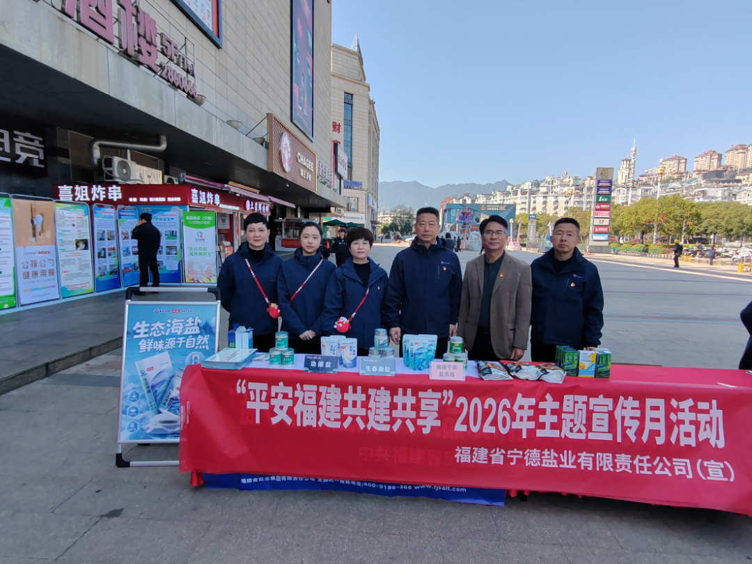 为深入贯彻落实“平安福建共建共享”2026年平安宣传月系列活动要求,福盐集团立足国企主责主业,将平安建设与食盐保供、食品安全等工作深度融合。连日来,全系统上下创新宣传方式,拓宽宣传阵地,开展了一系列接地气、有温度的平安宣传活动,以实际行动助力打造平安福地。