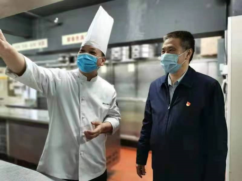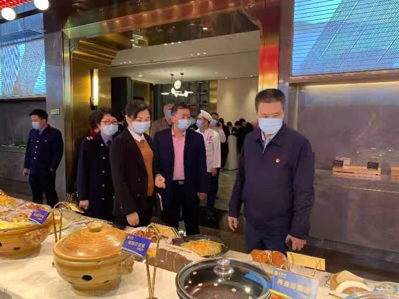 检查组一行先后前往东街口聚春园大酒店、富黎华海鲜大酒楼(正大广场店),对餐饮服务单位的后厨卫生、食品留样、从业人员佩戴口罩等情况进行检查。