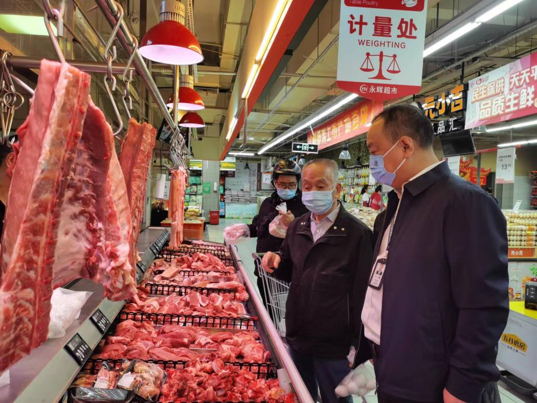 在晋安区永辉超市(华林店),刘小宁组长一行向正在购物的市民、超市工作人员和超市负责人详细了解青菜、肉蛋奶和水产品等重要民生商品价格情况以及基层市场监管部门履职尽责情况。