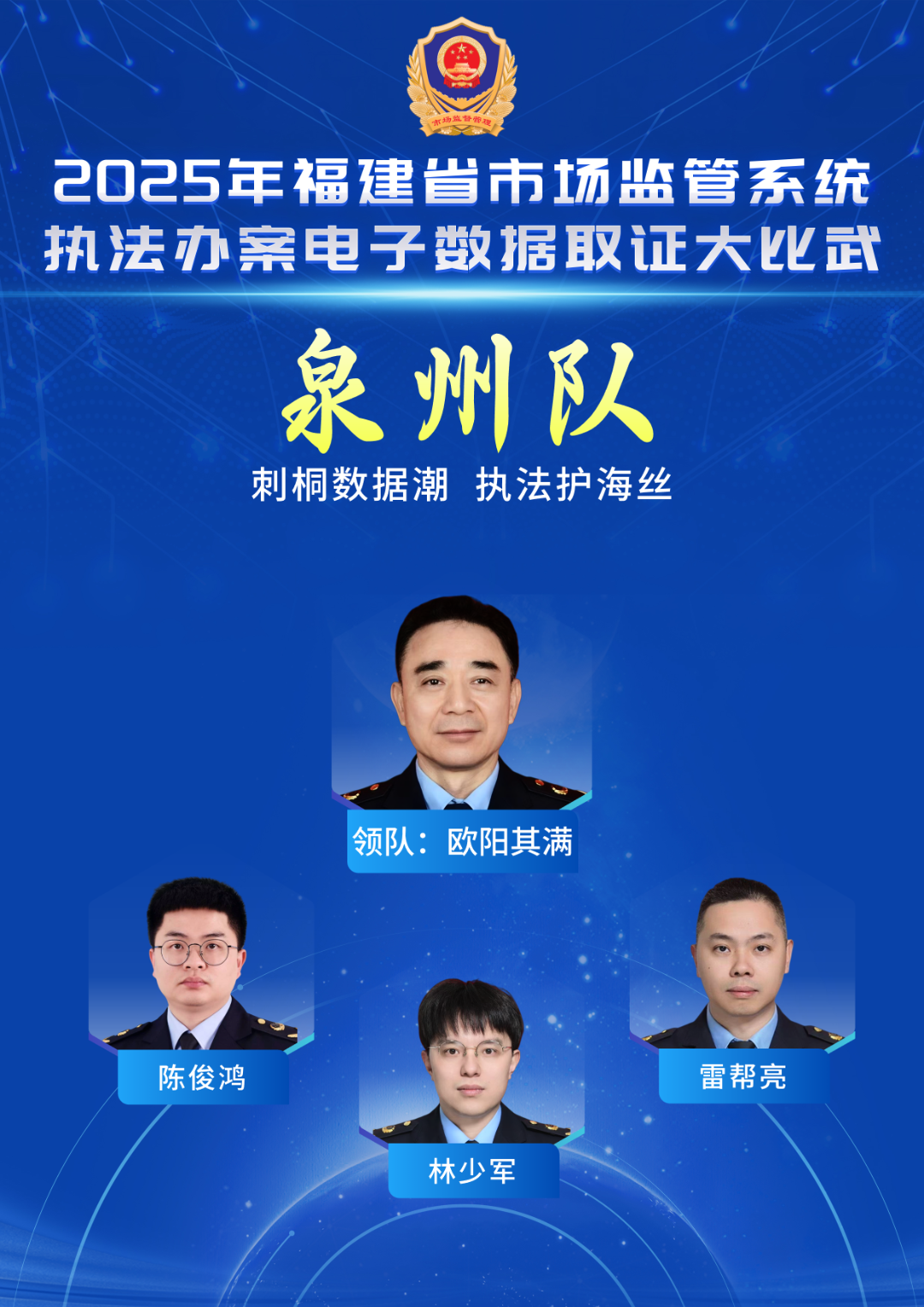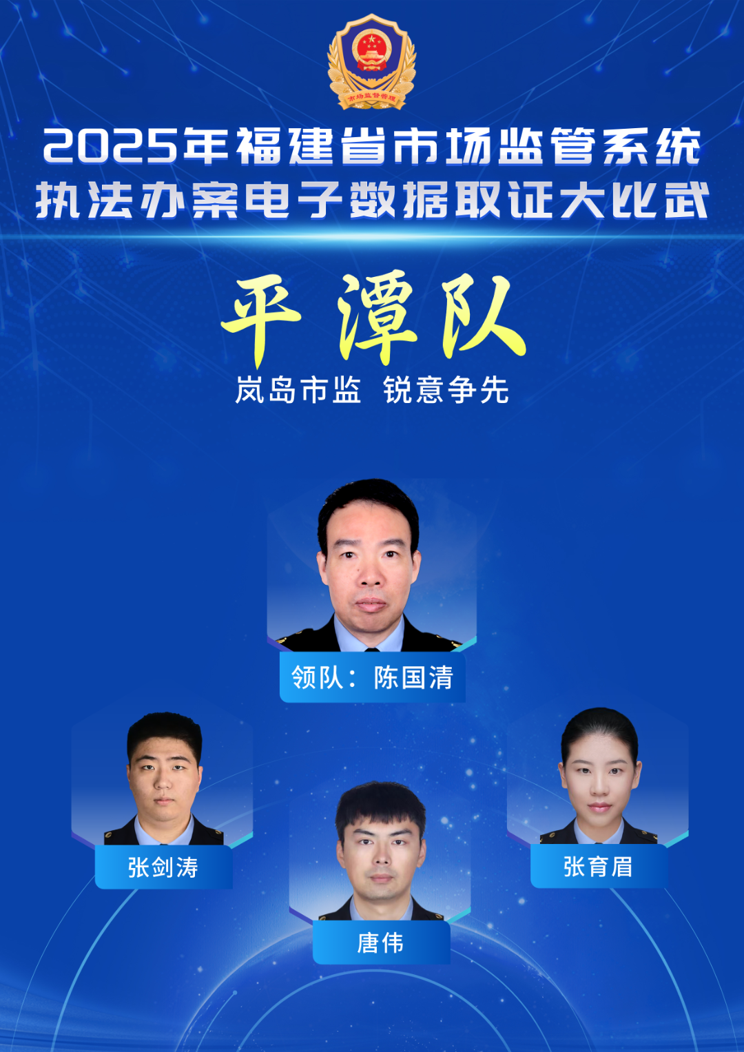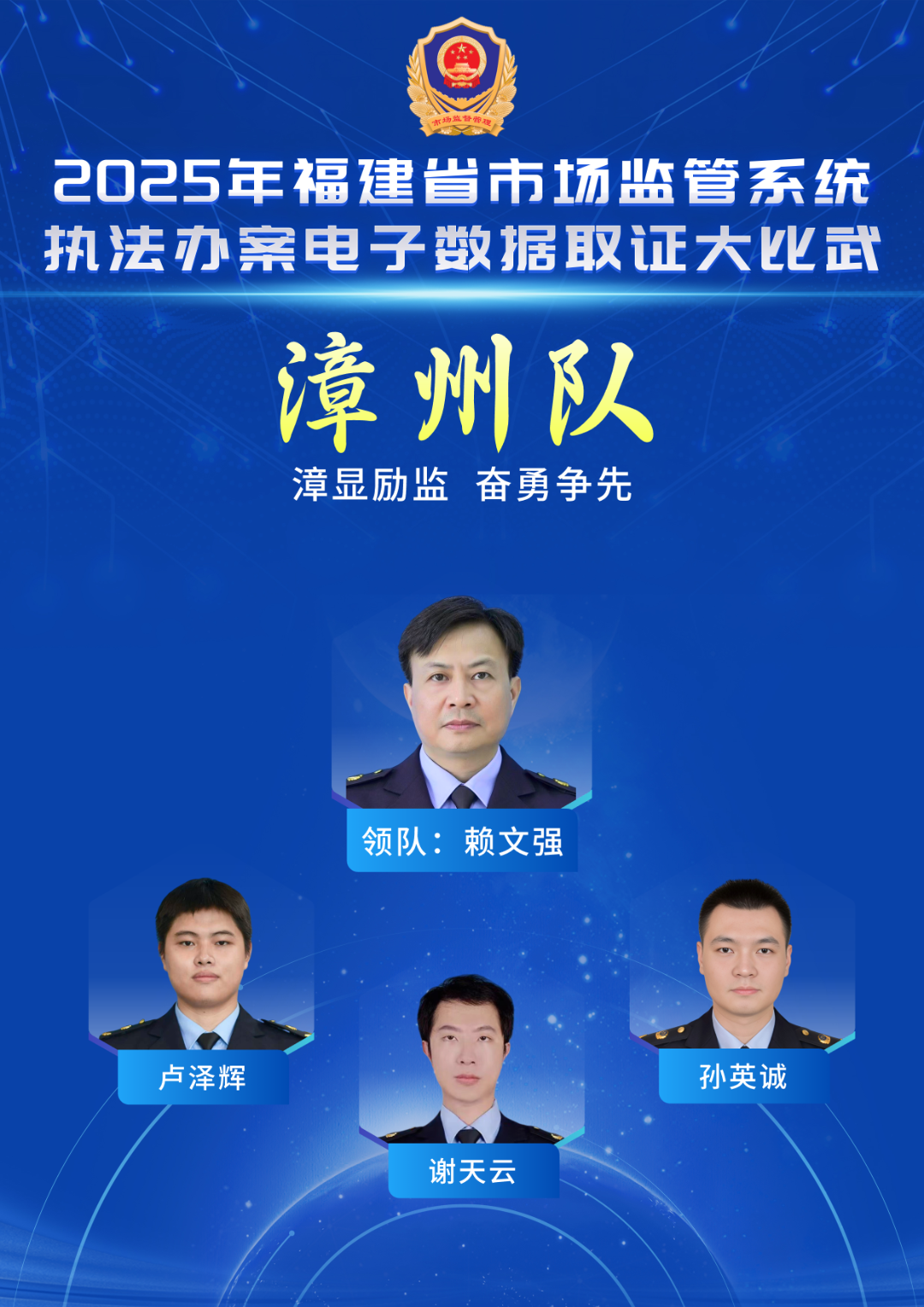 赖文强(领队),漳州市市场监管局综合执法支队支队长。