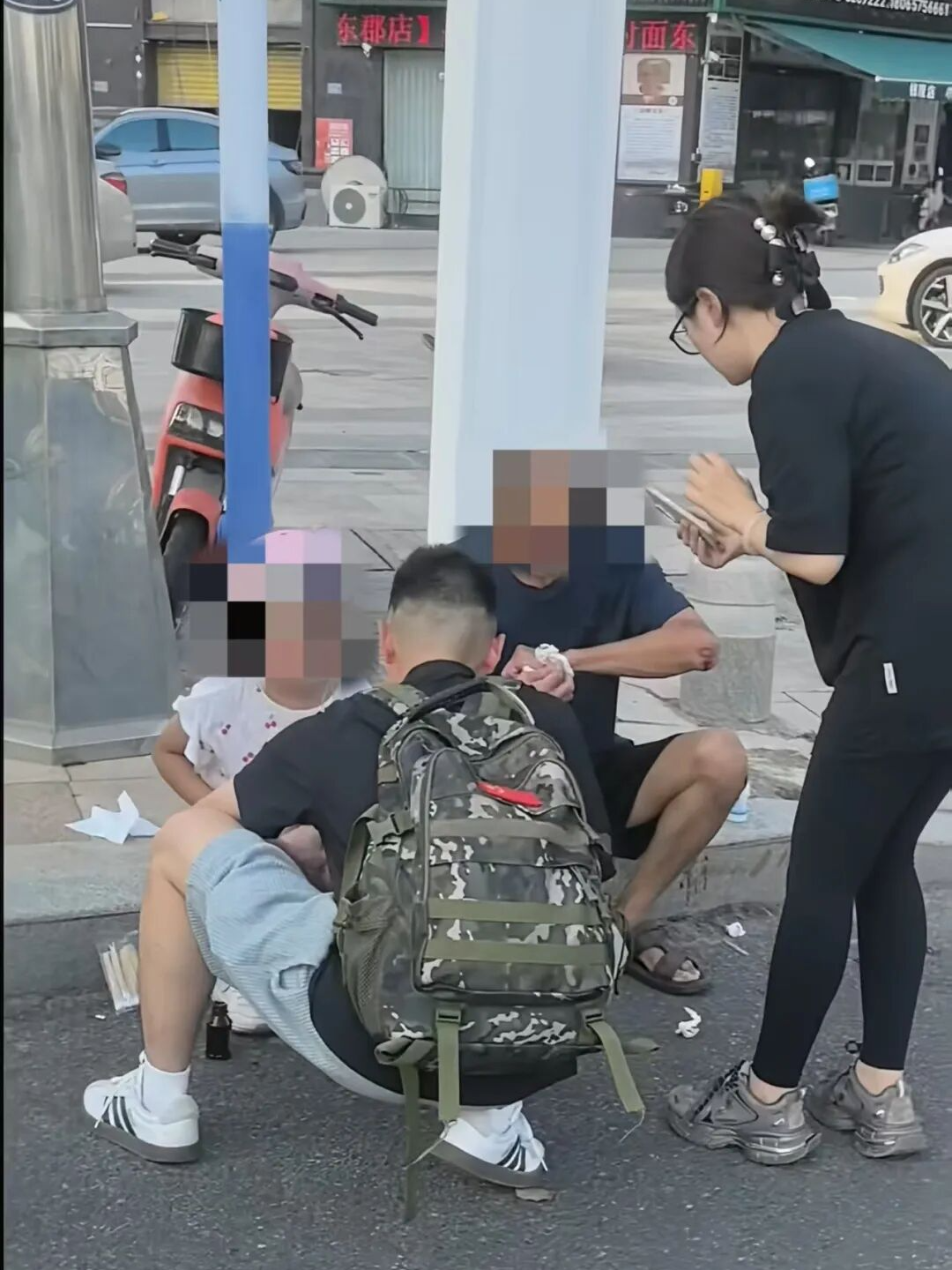 现场,轿车女司机一边拨打电话报警,一边从旁边药店借来消毒药水等物品。杨泽毅运用在部队学到的急救技能,熟练地为老人消毒、止血、包扎,并不停安抚受惊的小女孩。路人也纷纷伸出援手,有的递上矿泉水,有的协助疏导交通。 随后,在征得老人同意后,女司机将其送往医院。杨泽毅则默默将电动车移至停车区,并清理完路面血迹后才悄然离开。 据了解,杨泽毅曾服役于武警某支队,因训练受伤被评为九级伤残军人。退役后,他多次参与交通疏导、台风抢险等志愿行动,并积极投身国防教育,用实际行动践行“退役不褪色”的誓言。