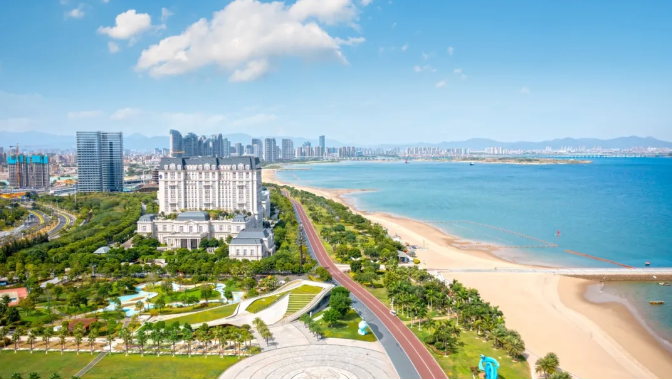 图源:厦门体育 厦门同安环东浪漫线是一条绵延数公里的滨海景观带。它西倚同安西山、美人山等连绵山峦,东临同安湾开阔海域,真正实现了“观山阅海”的独特体验。 漫步于此,可远眺绿意盎然的城市山林,近观潮汐拍打的金色沙滩。彩色沥青跑道蜿蜒向前,一侧是青峰叠翠,一侧是碧波万顷。沿途棕榈摇曳,绿化带与海天相映,无论是晨曦中的云雾缭绕,还是落日时的霞光浸染,都让人同时领略山峦的秀美与大海的壮阔。 这条活力长廊将山海资源完美融合,已成为市民休闲运动、亲近自然的绝佳去处。