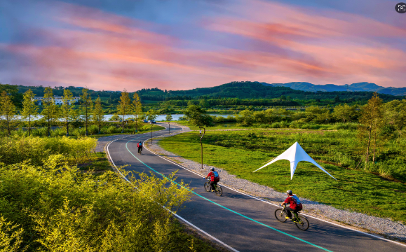 崇阳溪漫游道涵盖 66 公里线性空间的复合型场景运营,整合南平市建阳区至武夷山市两地廊道体系建设运营(城市绿道、森林步道),休闲空间管理(崇阳溪漫游道起终点公园、阿勒泰营地、南林营地)、文旅活动策划(主题节庆、研学体验)及智慧平台运维五大板块,联动沿线古村落遗址、闽越王城博物馆、茶山茶田、乡村合作社形成产业闭环,实现“城-林-村”空间贯通。 推出四季主题活动,春季茶旅节联动生态茶园,秋季闽越文化节办非遗展演,双节期间举办音浪美食嘉年华,形成“以节促旅”机制。