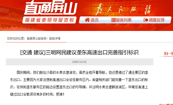 日前,有网友反映,三明垄东高速出入口设在服务区内很容易错过,针对此事,凯发k8记者先后联系了相关部门,均得到的回复是“完善标识的责任不在自己”。